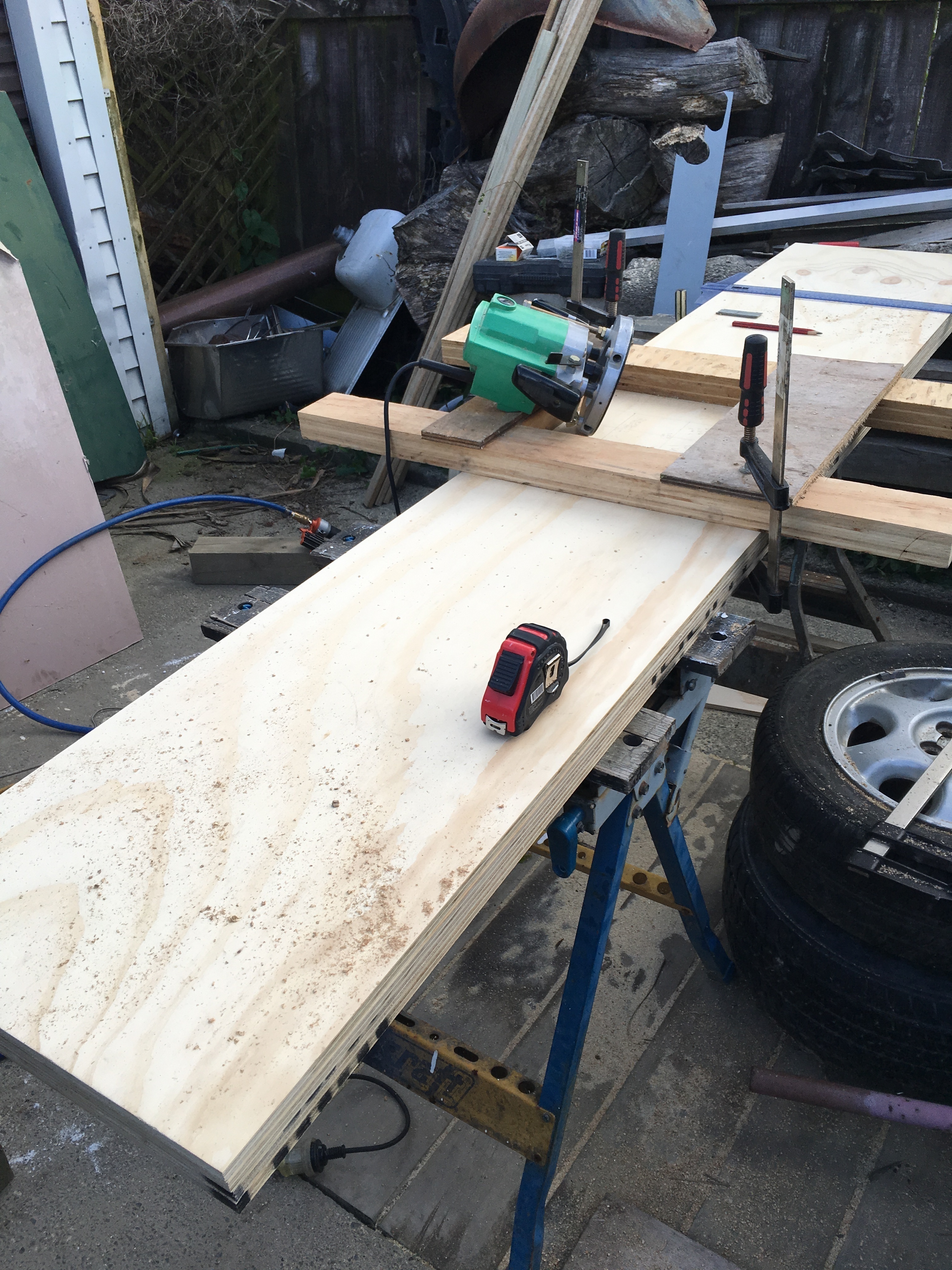 Cutting up plywood was nothing fancy, a stright edge and a skillsaw.
